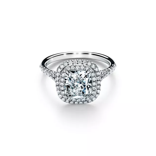 So wie die Sonne nach außen strahlt und Licht in alle Richtungen streut, so leuchtet auch der Tiffany Soleste Verlobungsring. Durch einen funkelnden doppelten Kranz aus strahlenden Diamanten und mit einem eindrucksvollen zentralen Edelstein im Cushion-Schliff wird das Licht gänzlich aufgenommen und widergespiegelt, sodass daraus ein unvergleichliches Schauspiel an Brillanz entsteht.