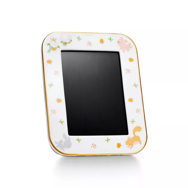 Für wunderschöne Designs ist man niemals zu jung. Unsere Tiny Tiffany Kollektion feiert die Meilensteine der Kleinsten mit Objekten, die eine Hommage an die ikonischen Motive und Schmuckstücke des Hauses darstellen. Dieser Bilderrahmen aus Porzellan mit einer bezaubernden Darstellung unserer Tierfiguren eignet sich perfekt für ganz besondere Erinnerungen und wird die Fantasie der Kleinen anregen.