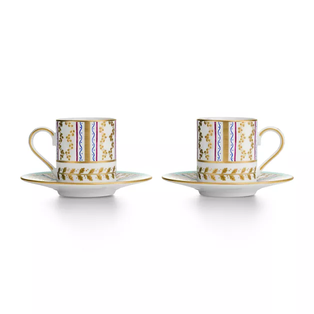 Die Tiffany & Co. x Fondation César Kollektion ist eine Hommage an die langjährige enge Verbundenheit des Juweliers zu Künstlern und eine Ode an den Geist der originellen Kunstfertigkeit. Nach dem Vorbild der Werke von César Baldaccini greift die Kollektion seine Faszination für die Idee auf, Objekte umzufunktionieren und von Konventionen abzuweichen. Sein Haus spiegelte diese Vorliebe deutlich wider. Dort umgab er sich mit Kunstwerken aus gesprungenen und zerbrochenen Keramiktellern, die er an den Küchenwänden aufhing. Mit dieser neuen Tiffany Home Kollektion führt das Haus drei Archivdesigns wieder ein, die von Baldaccinis Arbeit mit zerbrochenen Tellern inspiriert sind. Dieses Espressotassen-Set besticht mit Mosaikdesigns auf Farben, die von unseren ikonischen Edelsteinen inspiriert sind. Kombinieren Sie sie mit anderen Stücken aus der Kollektion, um einen abwechslungsreichen Tisch zu gestalten.