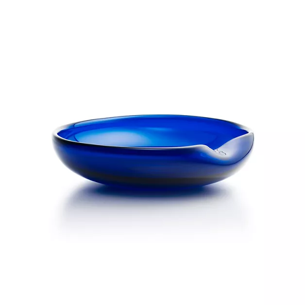 Das Thumbprint-Design ist eine von Perettis berühmtesten Kreationen. Schale aus mundgeblasenem venezianischem Kobaltglas. Durchmesser 28 cm. Copyright der Originaldesigns bei Elsa Peretti.