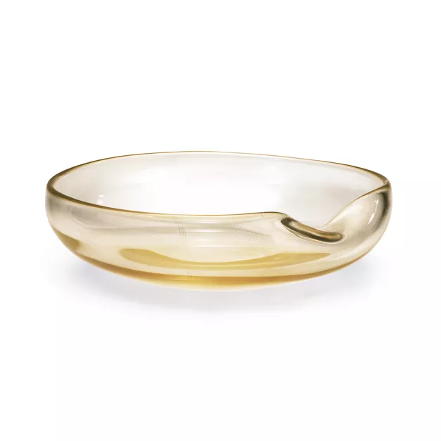 Das Thumbprint-Design ist eine von Perettis berühmtesten Kreationen. Schale aus handgefertigtem und mundgeblasenem venezianischen Glas mit 24 Karat Blattgold. Durchmesser 28 cm. Copyright der Originaldesigns bei Elsa Peretti.