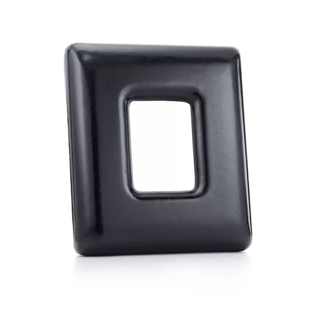 Rahmen in schwarzem Leder. Für ein 20,3 x 17,8 cm großes Foto mit einer 6,35 x 8,9 cm großen Fensteröffnung. Copyright der Originaldesigns bei Elsa Peretti.