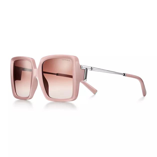 Inspirierend, bestärkend und vor allem langfristig erinnert die Tiffany T Kollektion uns an die Verbindungen, die wir fühlen, aber nicht immer sehen können. Diese Tiffany T Sonnenbrille ist aus rosafarbenem Acetat mit silberfarbenen Metallakzenten und quadratischen Gläsern mit rosa Farbverlauf gefertigt. Grafische Winkel kombiniert mit klaren Linien machen die wundervolle Schlichtheit der Tiffany T Brillenkollektion aus.