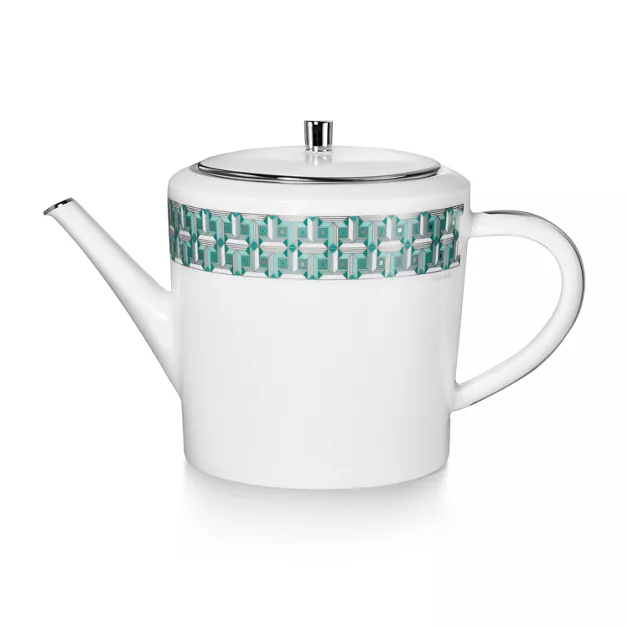 Inspiriert von der gleichnamigen Schmuckkollektion bringt Tiffany T True Essgeschirr wunderschönen Glanz auf den Tisch. Diese Teekanne aus Limoges-Porzellan mit handgemaltem Platinrand wird von einer geometrischen Interpretation des Tiffany T True Motivs verziert. Kombinieren Sie sie mit einem Tiffany T True Milchkännchen oder einer Zuckerschale in verschiedenen Farben für eine originelle Tischdekoration.