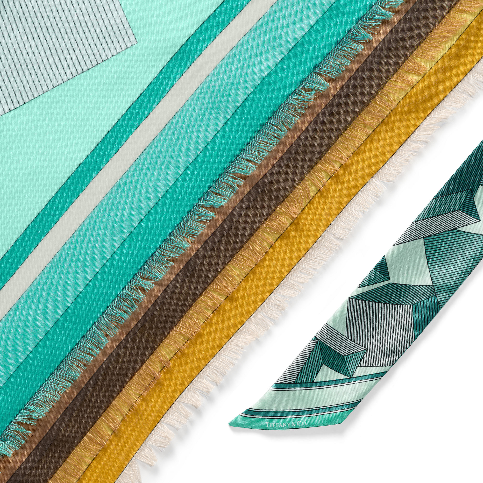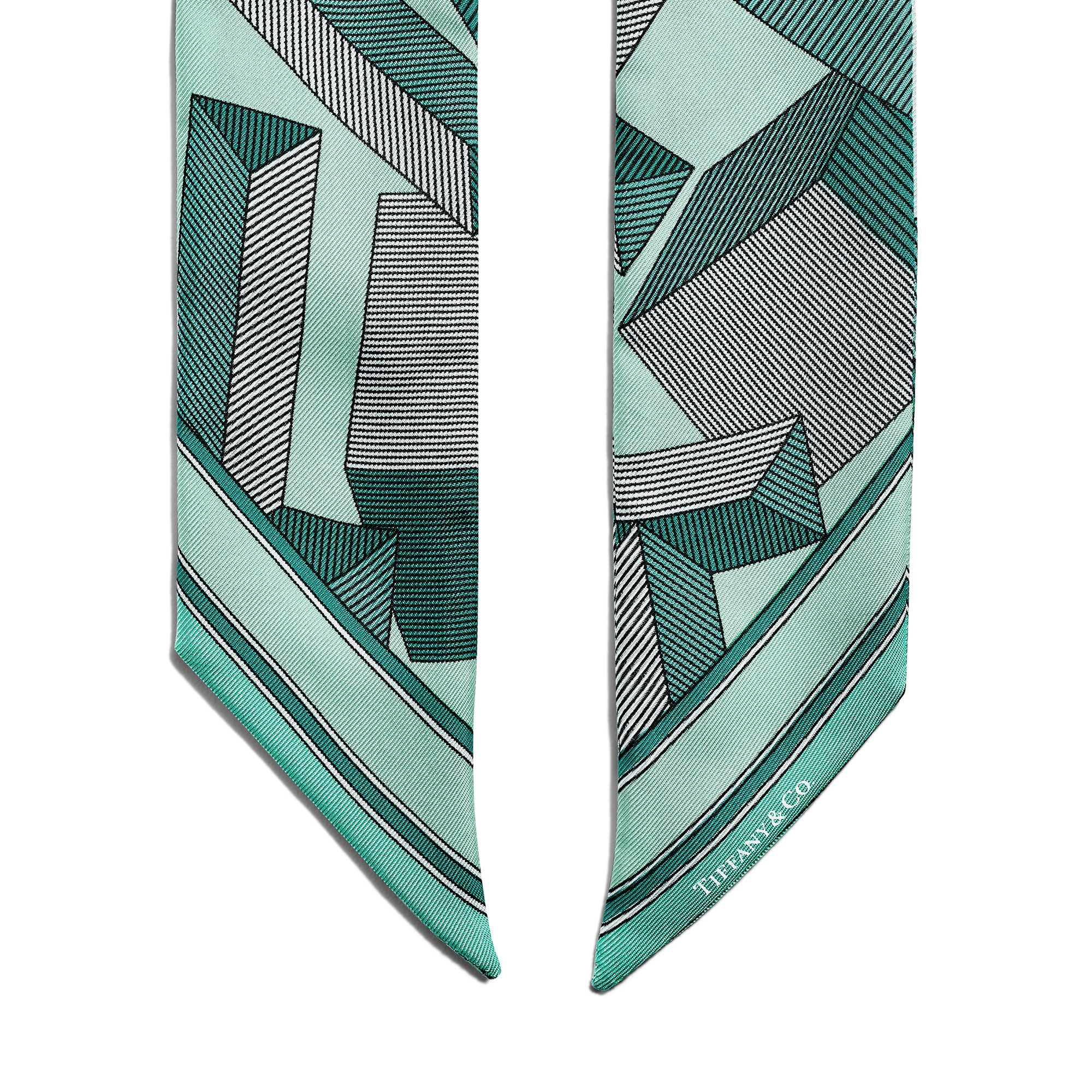 Die Tiffany T Kollektion wurde von unserem Lieblingsbuchstaben inspiriert. Dieser schmale Seidenschal zeichnet sich durch ein beeindruckendes T-Motiv zusammen mit geometrischen Formen in unserem ikonischen Tiffany Blue® aus. Zum Kombinieren mit einem Schalring von Tiffany oder zur kunstvollen Dekoration Ihrer Lieblingshandtasche.