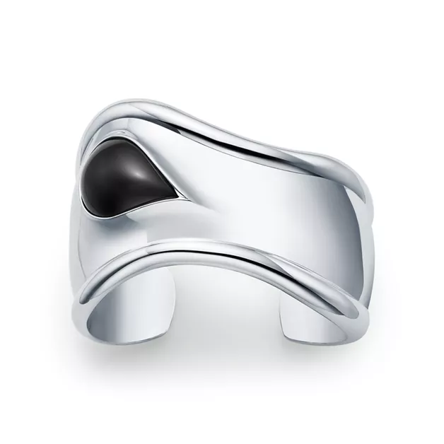 Eine Hommage an die erhabene Schönheit der Natur – Elsa Peretti® Bone Cuffs mit geschliffenem Edelstein werden von meisterhaften Kunsthandwerkern gefertigt, die jeden Edelstein von Hand schleifen und einfassen. Das bahnbrechende Bone Cuff Design wurde erstmals in den 1970ern vorgestellt und ist sehr feminin und mühelos elegant. Dieser Bone Cuff in Sterlingsilber, eine besondere Interpretation des ikonischen Designs, ist eine Hommage an die Schönheit der von Hand gesetzten schwarzen Nephrit-Jade und spiegelt die Leidenschaft der Designerin für glatte, skulpturale Oberflächen wider.