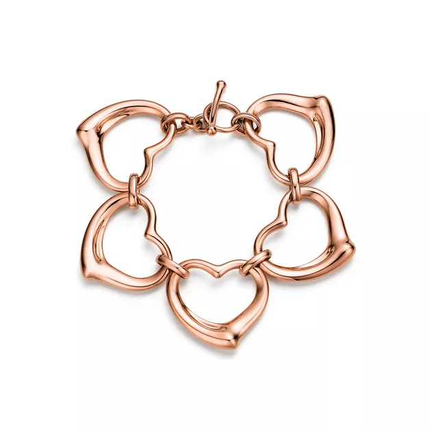 Die schlichte, bewegende Form der Elsa Peretti® Open Heart Designs ist ein Ausdruck der grenzenlosen Kraft der Liebe. Die Kollektion zeugt von Perettis Affinität für Handwerkskunst und Form und interpretiert die Herzform mit einem organischen und skulpturalen Ansatz neu, der über die Sentimentalität dieses universellen Symbols hinausgeht. Tragen Sie dieses Armband in 18 Karat Roségold einzeln oder zusammen mit Ihrer täglichen Armband-Kombination für einen extravaganten Look.