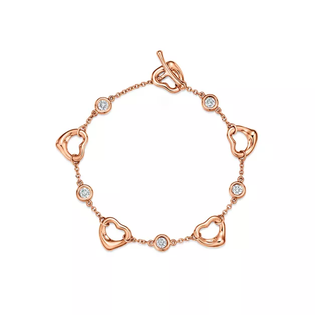 Die schlichte, bewegende Form der Elsa Peretti® Open Heart Designs ist ein Ausdruck der grenzenlosen Kraft der Liebe. Die Kollektion zeugt von Perettis Affinität für Handwerkskunst und Form und interpretiert die Herzform mit einem organischen und skulpturalen Ansatz neu, der über die Sentimentalität dieses universellen Symbols hinausgeht. Dieses Armband in 18 Karat Roségold besticht mit Diamonds by the Yard®, einer Kombination aus feinen, fließenden Ketten und Edelsteinen in Bezel-Fassung, die den Stellenwert von Diamanten in der Modewelt änderten. Tragen Sie dieses Stück einzeln oder zusammen mit Ihrer täglichen Armband-Kombination für einen extravaganten Look.