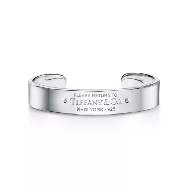 Die Return to Tiffany™ Kollektion, die von dem 1969 eingeführten ikonischen Schlüsselanhänger inspiriert wurde, ist die Neuerfindung eines Klassikers. Mit seinen zwei atemberaubenden Diamanten setzt dieser moderne Armreif ein markantes Style-Statement.