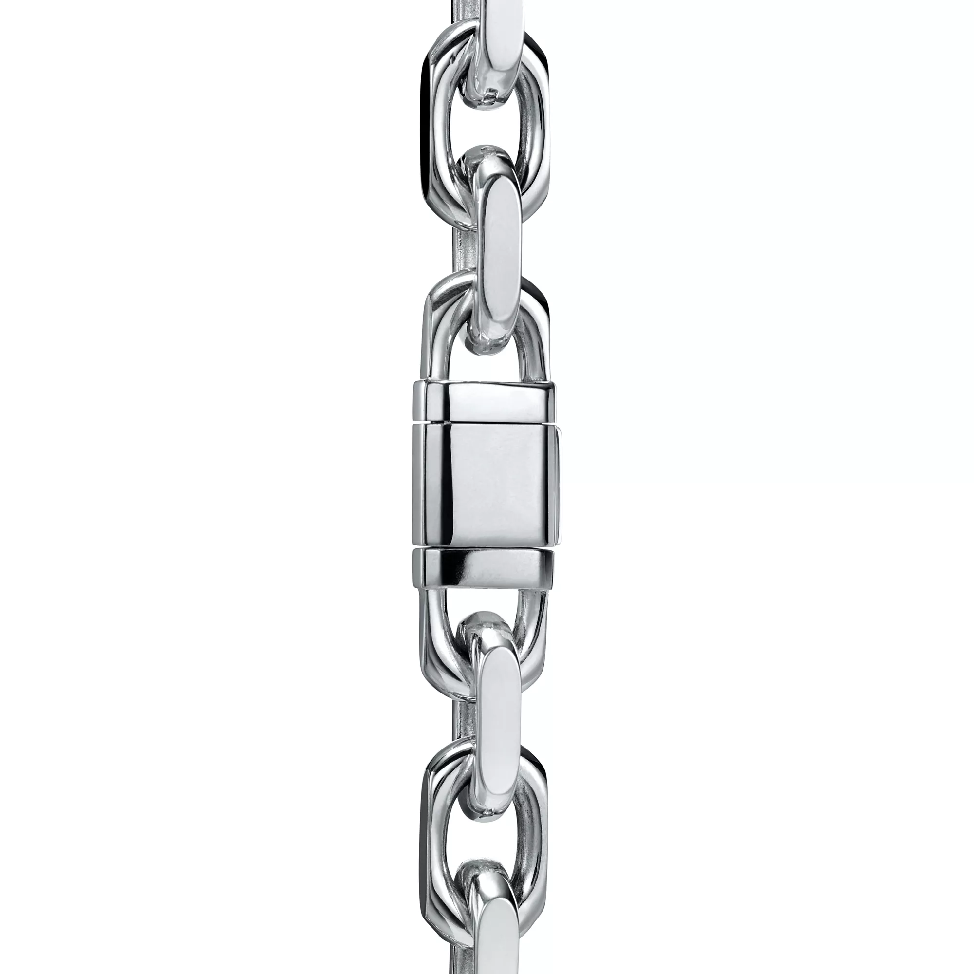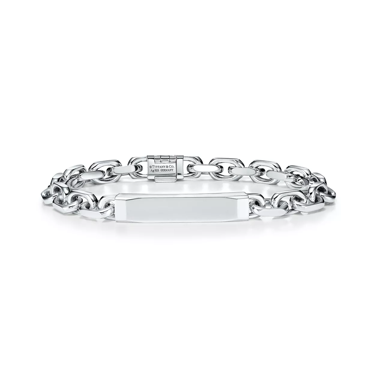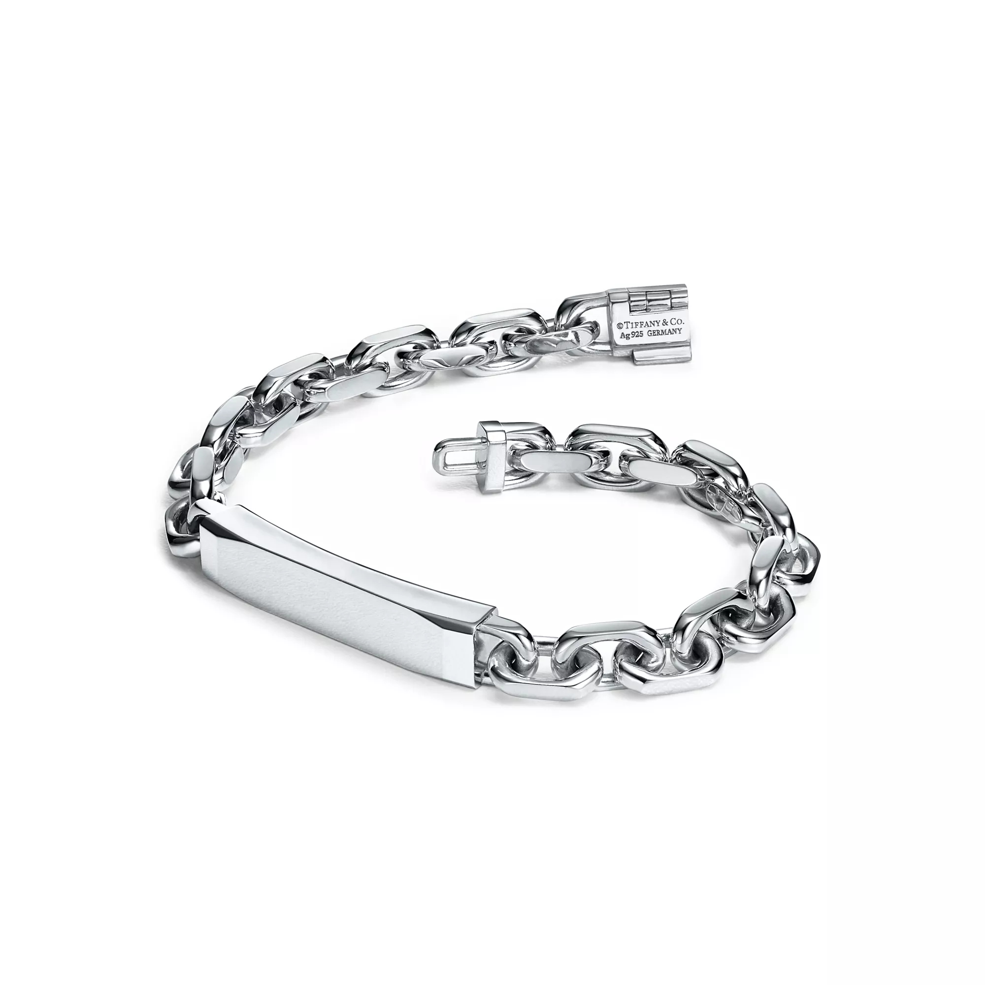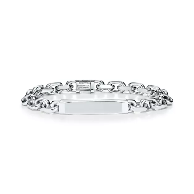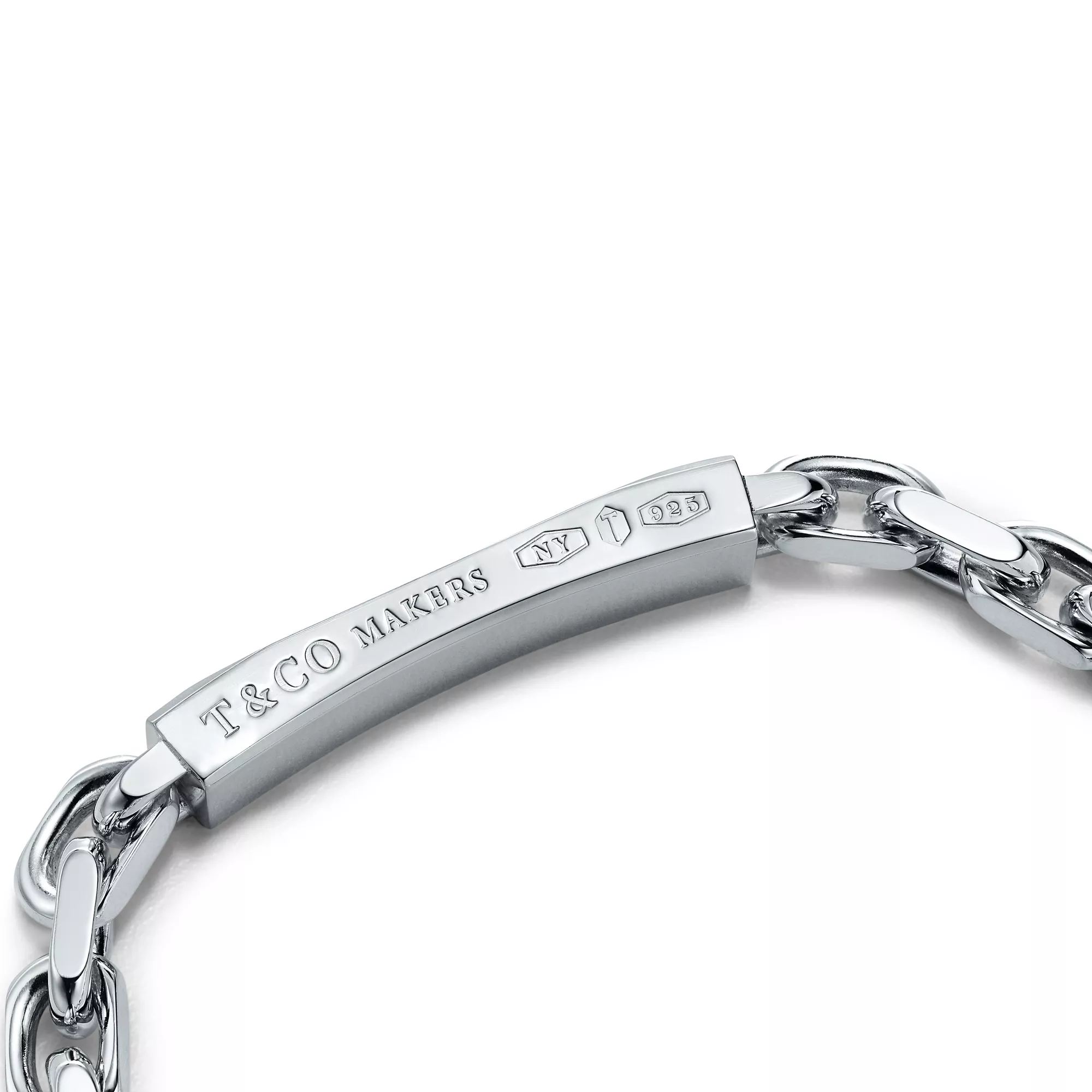 Dieses aus Sterlingsilber aufwändig gestaltete I.D.-Gliederarmband mit einem perfekt zum Gravieren geeigneten Steg fängt den praktischen Geist des klassischen amerikanischen Designs ein. Die Tiffany 1837™ Makers Kollektion, die ein von dem berühmten Tiffany Atelier inspiriertes Makers-Symbol trägt, zelebriert die Tiffany Tradition der meisterhaften Handwerkskunst auf eine moderne Weise. Dieser Stil sieht sowohl einzeln getragen als auch in Kombination mit einer Tiffany Uhr cool aus.