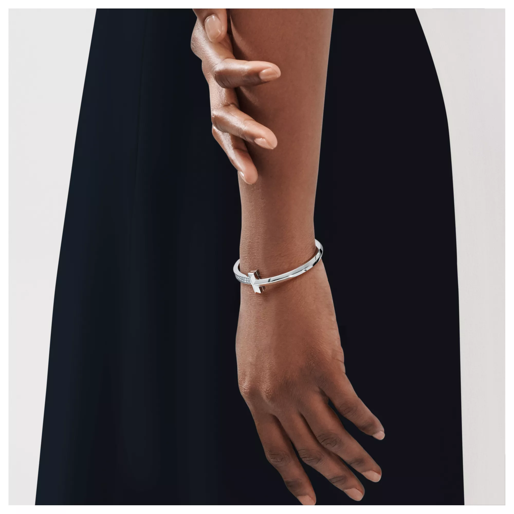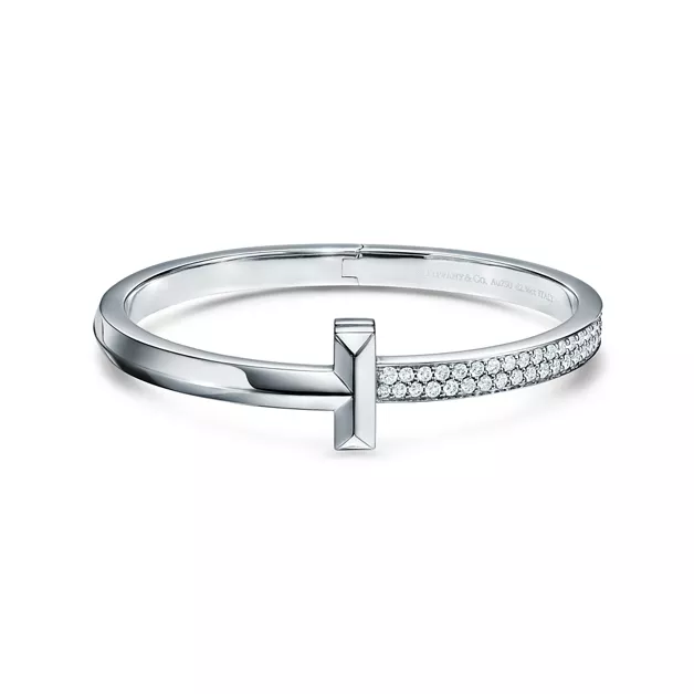 Tiffany T T One breiter aufklappbarer Armreif mit Diamanten in Weißgold