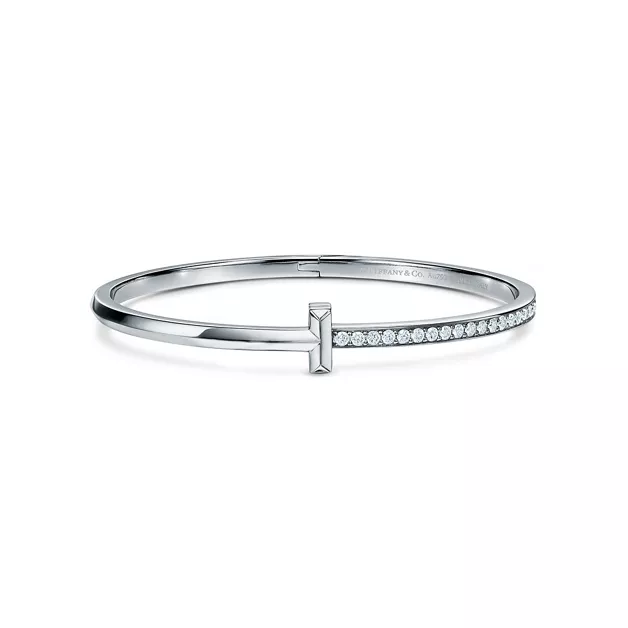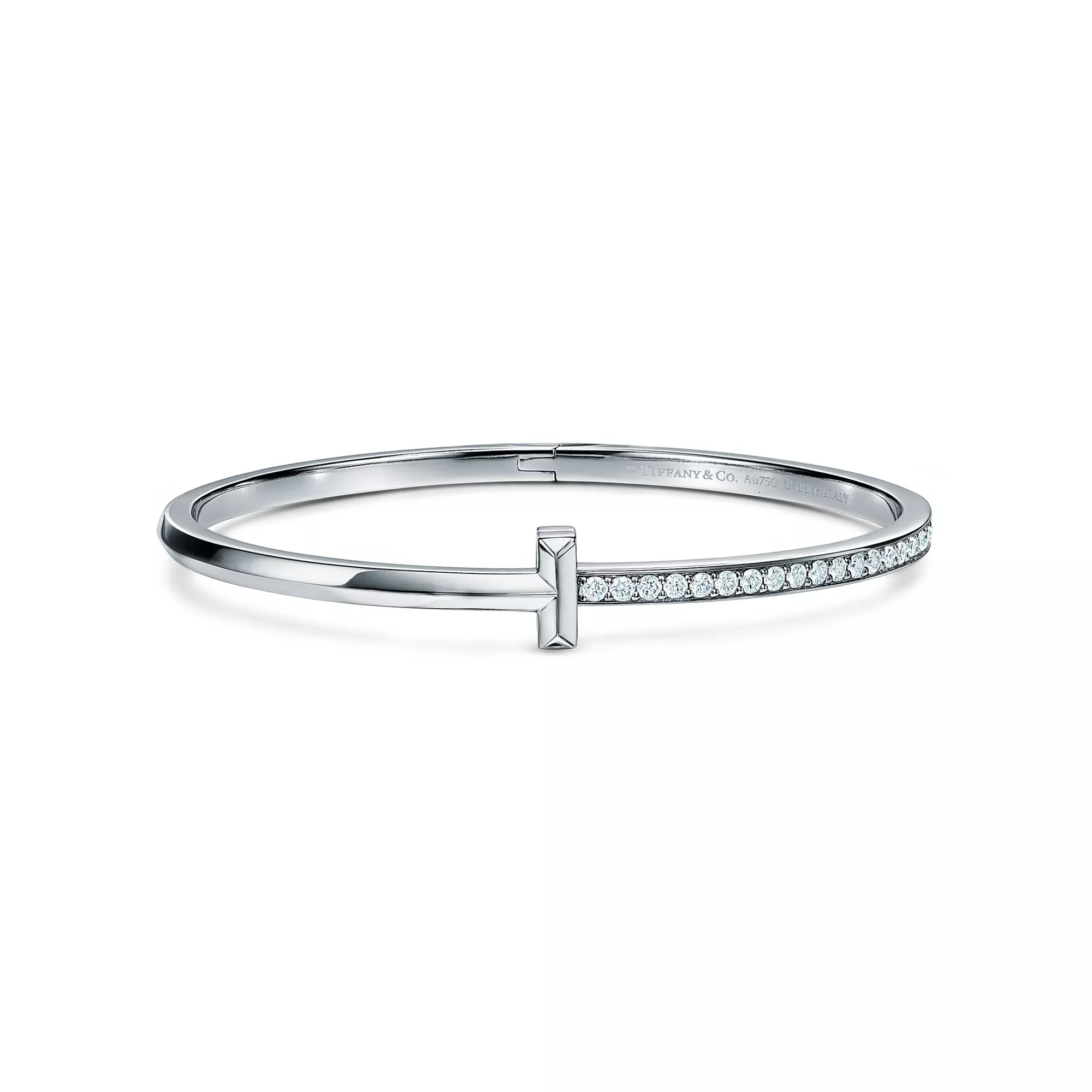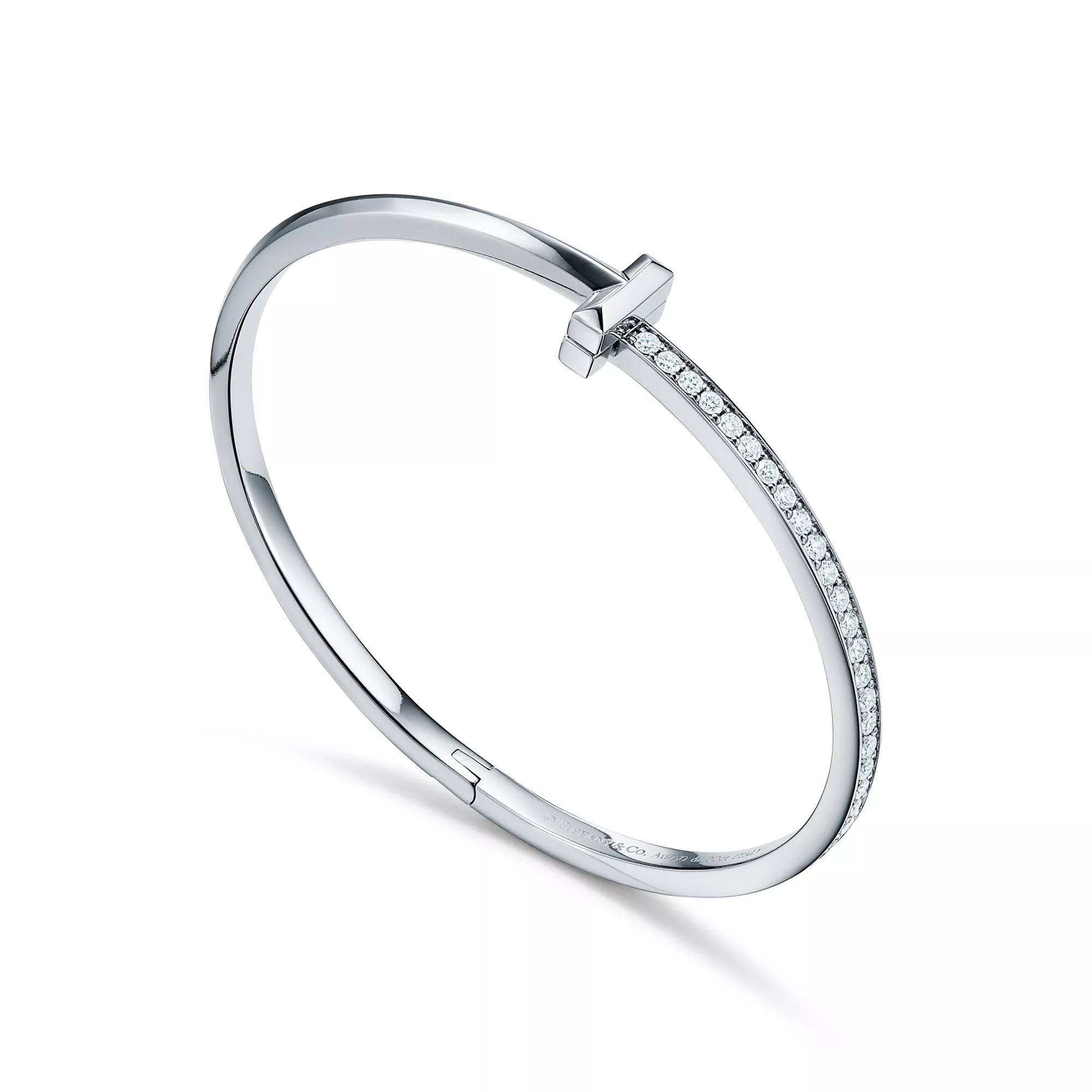 Tiffany T T One schmaler aufklappbarer Armreif mit Diamanten in Weißgold