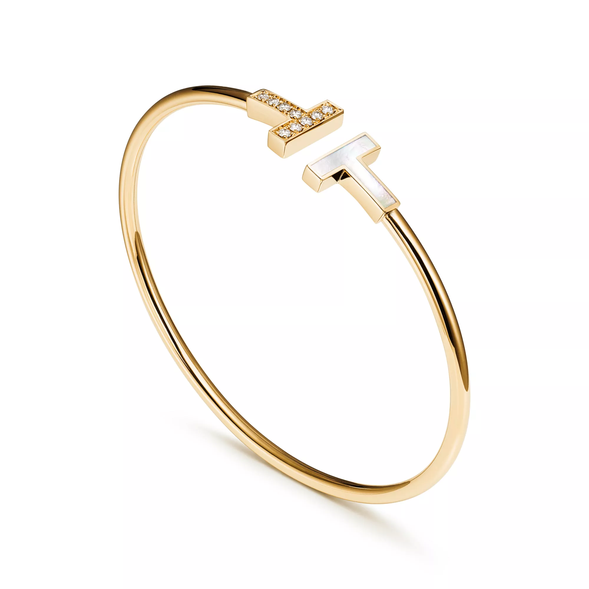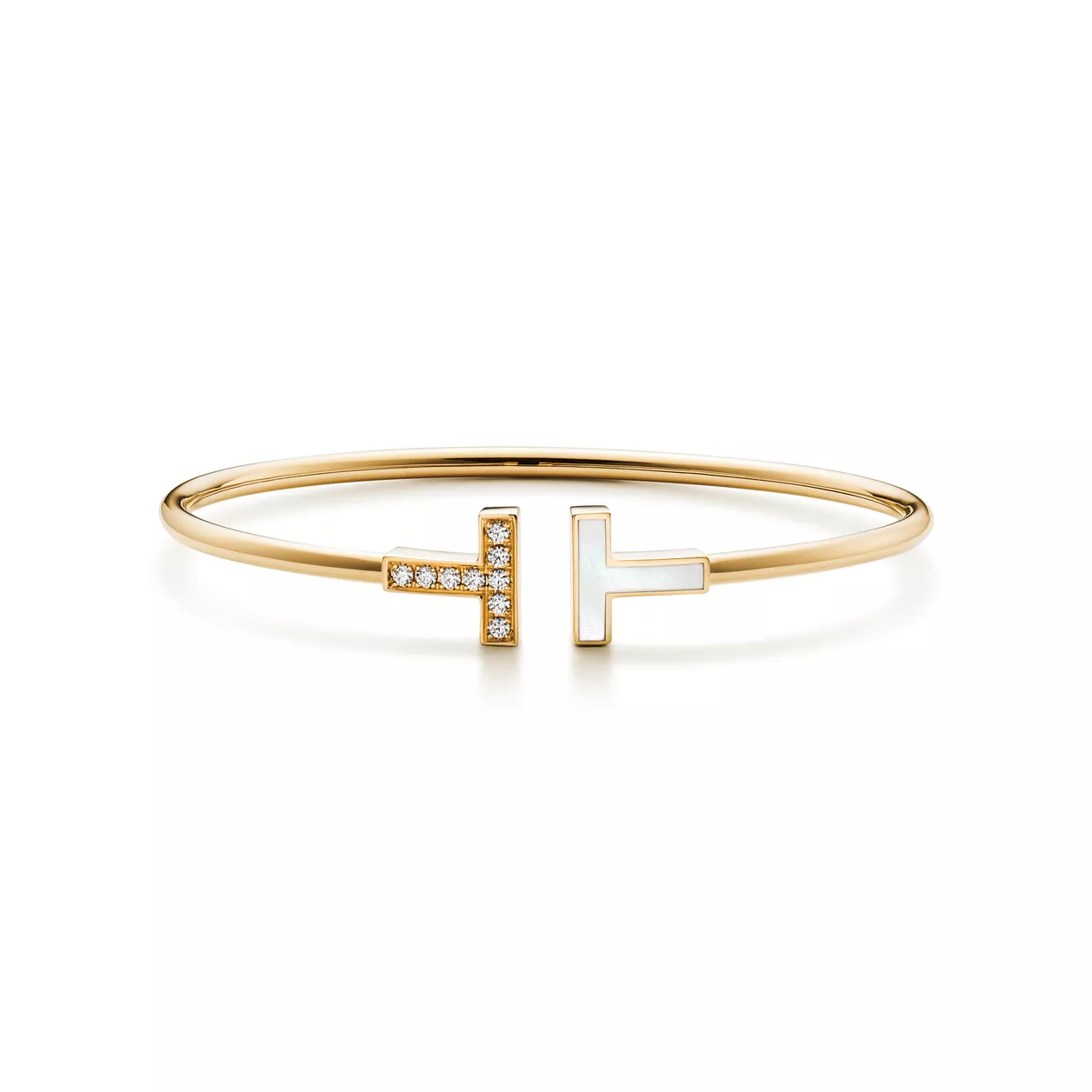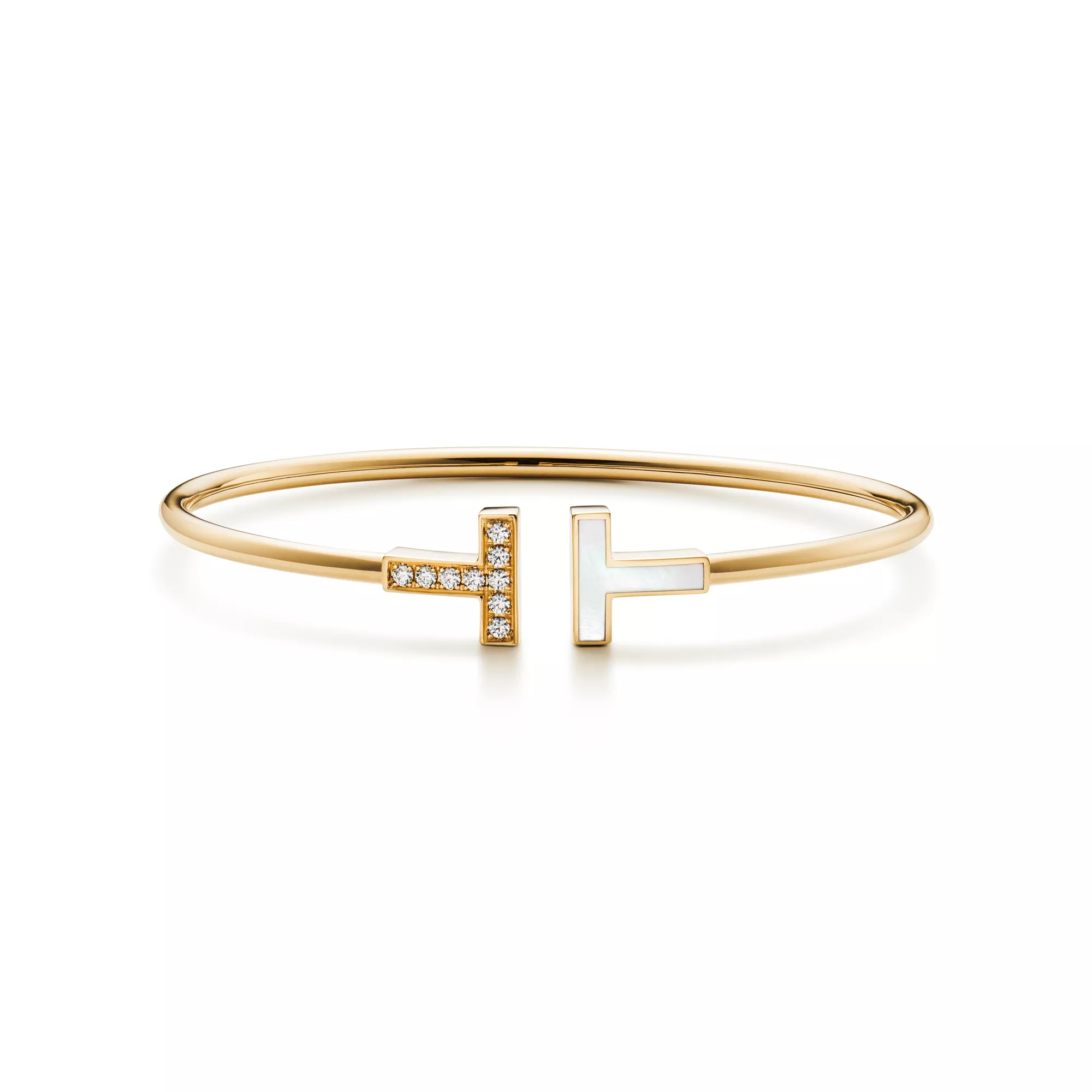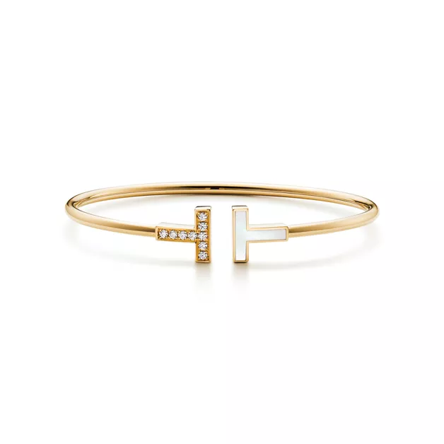 Tiffany T Wire Armreif in Gelbgold mit Perlmutt und Diamanten