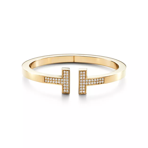 Wir informieren Sie, wenn Tiffany T Square Armreif mit Pavé-Diamanten in Gelbgold verfügbar ist.