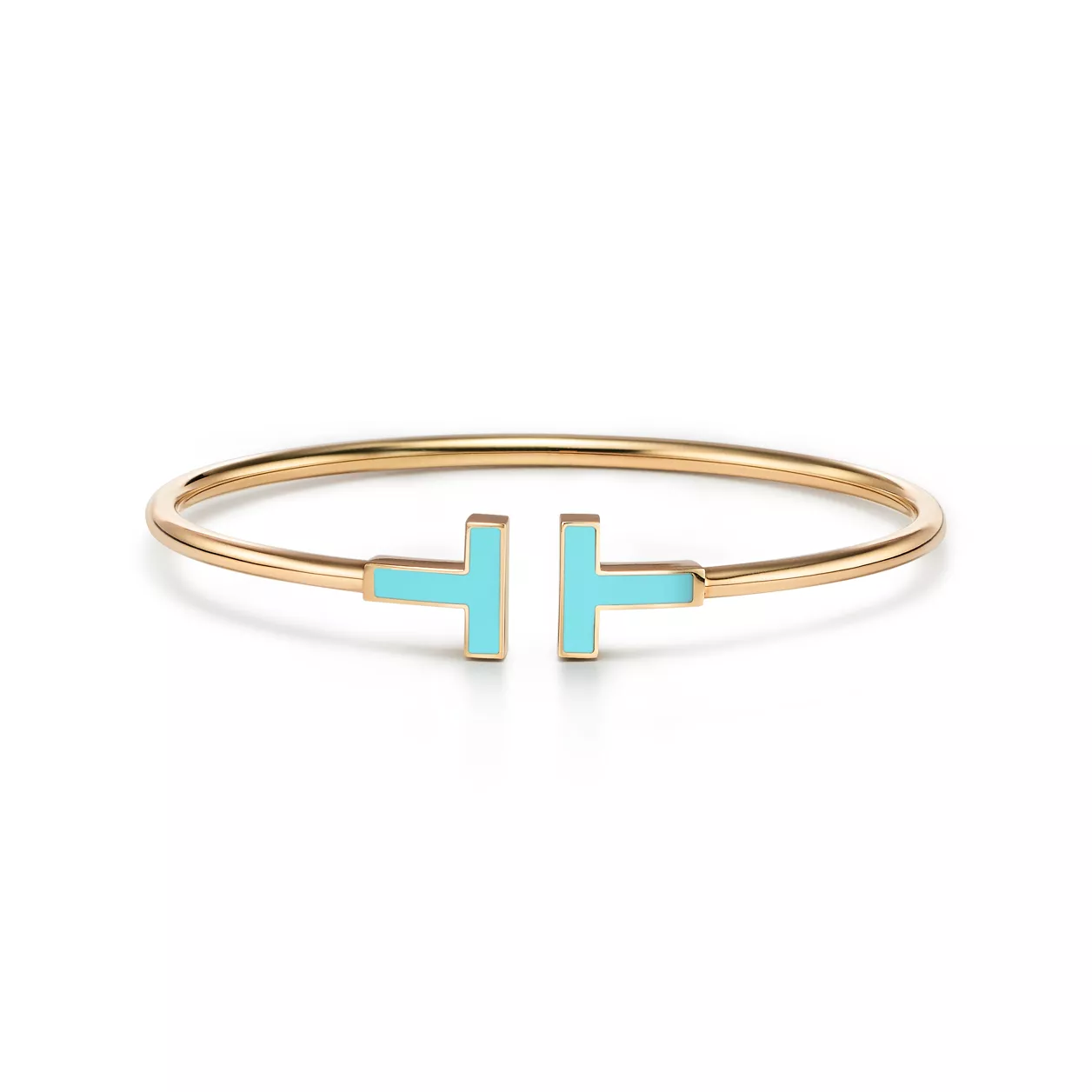 Tiffany T Wire Armreif mit Türkis in Gelbgold