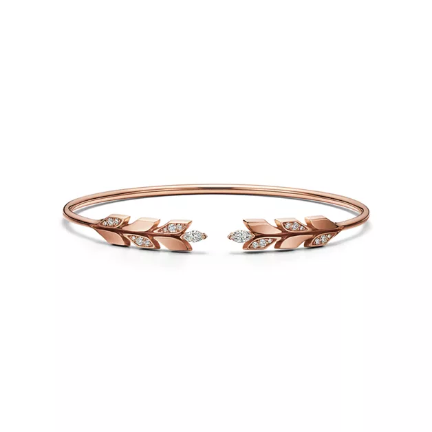 Inspiriert von der Natur, fangen die Tiffany Victoria® Designs die fließende Bewegung von Blumen, Reben und Blättern mit einer Mischung aus meisterhaft geschliffenen Diamanten ein. Dieses Wire Armband ist aus 18 Karat Roségold gefertigt und besticht mit seinem Kontrast zwischen hochglanzpolierten und sandgestrahlten Oberflächen. Diamanten im runden Brillant- und Marquiseschliff spielen mit dem Licht und akzentuieren das Rebenmotiv. Wenn zu viele Diamanten niemals genug sind, ist Tiffany Victoria® die ultimative Art zu glänzen. Tragen Sie es allein oder in Kombination mit Ihrem bevorzugten Diamant-Tennisarmband für ultimatives Funkeln.