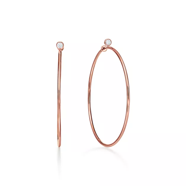 Ohrringe in 18 Karat Roségold mit Diamanten im runden Brillantschliff. Größe Medium. Gesamtkaratgewicht 0,10. Copyright der Originaldesigns bei Elsa Peretti.