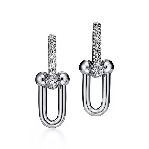 Tiffany HardWear Gliederohrringe, große Glieder in Weißgold mit Pavé-Diamanten