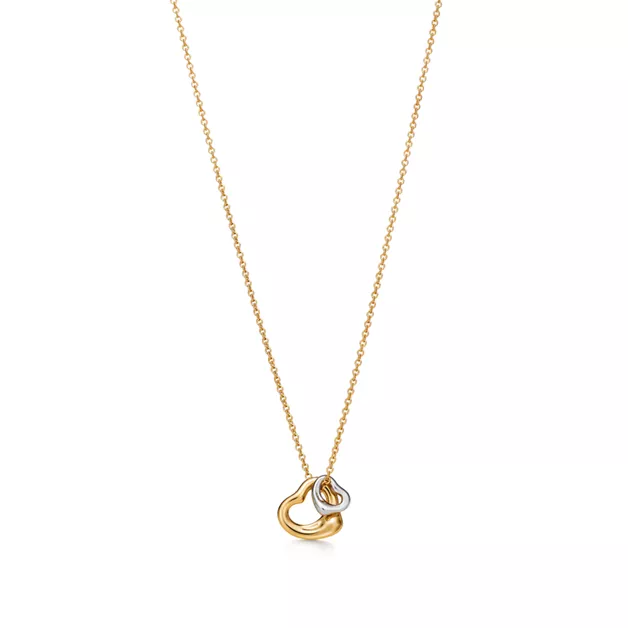 Die schlichte, bewegende Form der Elsa Peretti Open Heart Kreationen zelebriert den Geist der Liebe. Dieser elegante Stil ist meisterhaft in 18 Karat Gelbgold und Platin gefertigt und gilt als eine ihrer berühmtesten Kreationen. Kombinieren Sie dieses Schmuckstück mit Anhängern unterschiedlicher Länge oder tragen Sie es als aussagekräftiges Einzelstück.