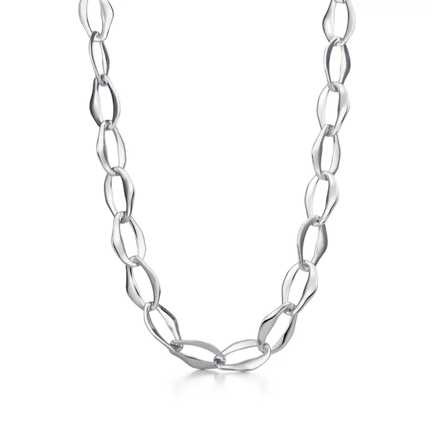 Bei jedem Glied sind die Ränder glattgeschliffen wie bei den Wellen eines großen Meeres. Halskette aus Sterlingsilber. 51 cm lang. Copyright der Originaldesigns by Elsa Peretti®.