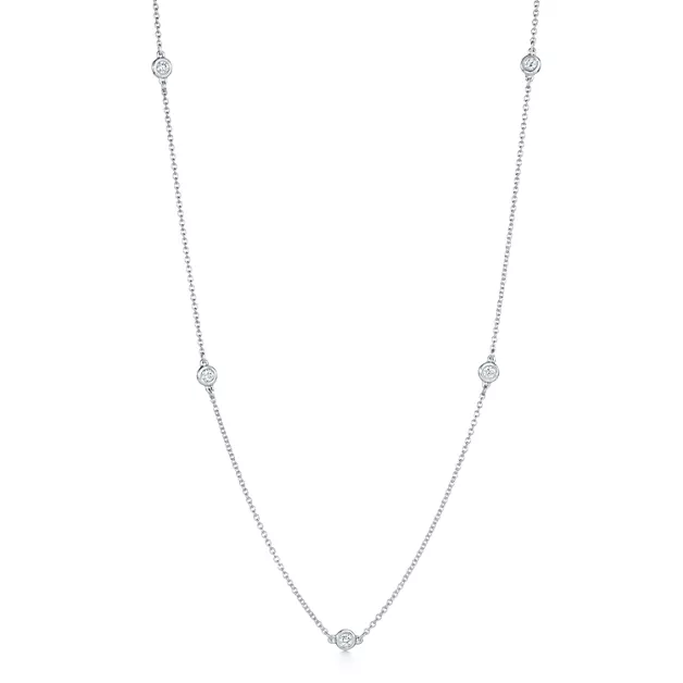 Die runden Diamanten von Tiffany fangen das Licht ein und bringen es zum Tanzen. Halskette mit runden Brillanten in Sterlingsilber. 46 cm lang. Copyright der Originaldesigns by Elsa Peretti®.