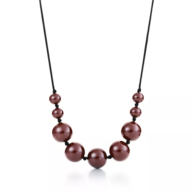 Schlank, kühn und atemberaubend. Halskette in traditionellem braunen Lack auf japanischem Edelholz. An einem verstellbaren Seidenband. Copyright der Originaldesigns by Elsa Peretti®.