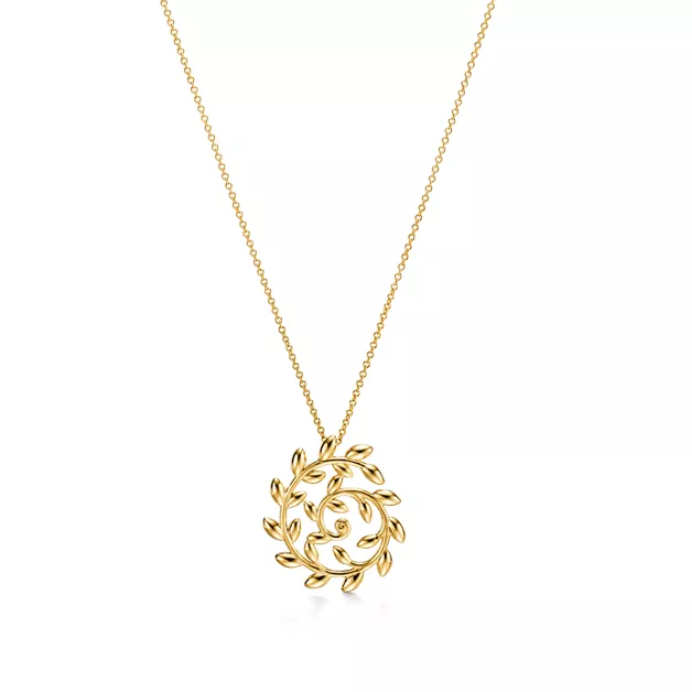 Paloma Picasso® Olive Leaf ist ein Symbol für Frieden und Wohlstand. Dieser Anhänger in 18 Karat Gelbgold ist eine elegante Mischung aus Kunstfertigkeit und Tragekomfort und inspiriert von den Olivenhainen, die das Haus der Designerin in Marrakesch umgeben. Tragen Sie ihn einzeln oder kombiniert mit einem Olive Leaf Ring für einen zeitlosen Look.