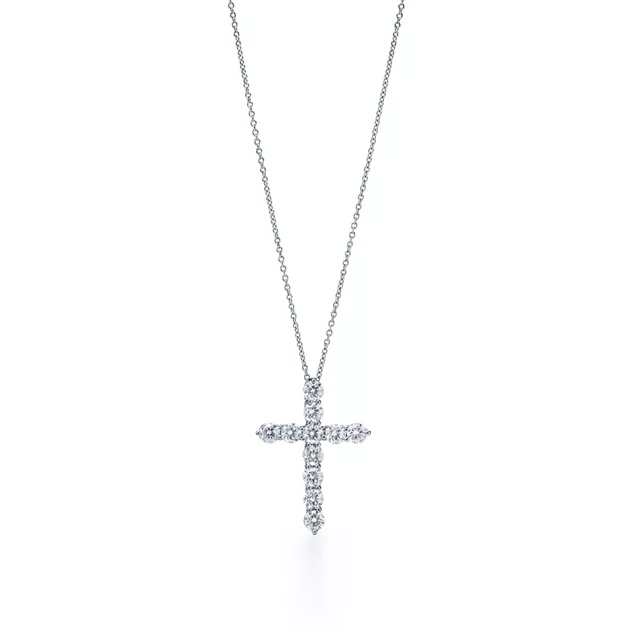 Ein ikonisches religiöses Symbol. Anhänger mit runden Brillanten in Platin. Größe Large, an einer 41 cm langen Kette. Gesamtkaratgewicht 1,71 kt.