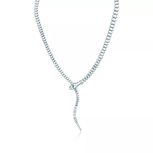 Die Elsa Peretti® Schlangen-Halskette ist von einem Glücksbringer inspiriert, den die Künstlerin einst geschenkt bekommen hatte. Das ausgefeilte Design und die Handwerkskunst der schlangenförmigen Form sorgen für einen fließenden Effekt, der der Trägerin auf harmonische Weise schmeichelt. Tragen Sie diese Halskette für einen atemberaubenden Look, der begeistert.