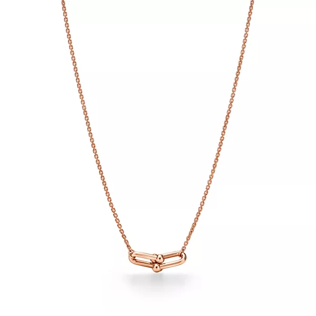 Tiffany HardWear ist ein Symbol der Verwandlungskraft der Liebe. Inspiriert durch ein Armband aus dem Jahr 1962, das man in den Archiven des Hauses fand, verkörpert HardWear zeitlose Beständigkeit und ungezügelten Geist. Heute setzt Tiffany HardWear dieses Prinzip mit einer Kollektion fort, die auf der Freiheit und Stärke der Liebe beruht. Wie die Stadt, in der sie entstanden ist, verkörpert die HardWear Kollektion ein Gefühl von Freiheit. Die für die Kollektion charakteristischen Kettenglieder zieren eine Reihe dynamischer Designs. Innovative, kunstvoll gefertigte Schnappverschlüsse sorgen in der gesamten Kollektion für nahtlose Übergänge. Jedes einzelne mit Herzblut geschaffene Kettenglied wird von Hand gefertigt – ein perfektes Gleichgewicht zwischen Ausstrahlung und Proportion – und dann nacheinander zu einem eleganten Ganzen zusammengefügt. Diese doppelte Gliederhalskette mit kleinen Gliedern in 18 Karat Roségold ist ebenso markant wie vielseitig. Tragen Sie die Halskette einzeln oder kombinieren Sie sie mit HardWear Ketten in verschiedenen Längen für einen überraschenden Look.