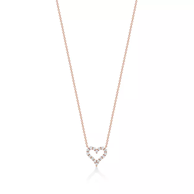 Tiffany zeigt Herz. Aus 18 Karat Roségold mit runden Brillanten. Größe Mini, mit 40,5 cm langer Kette. Gesamtkaratgewicht 0,25 Karat.
