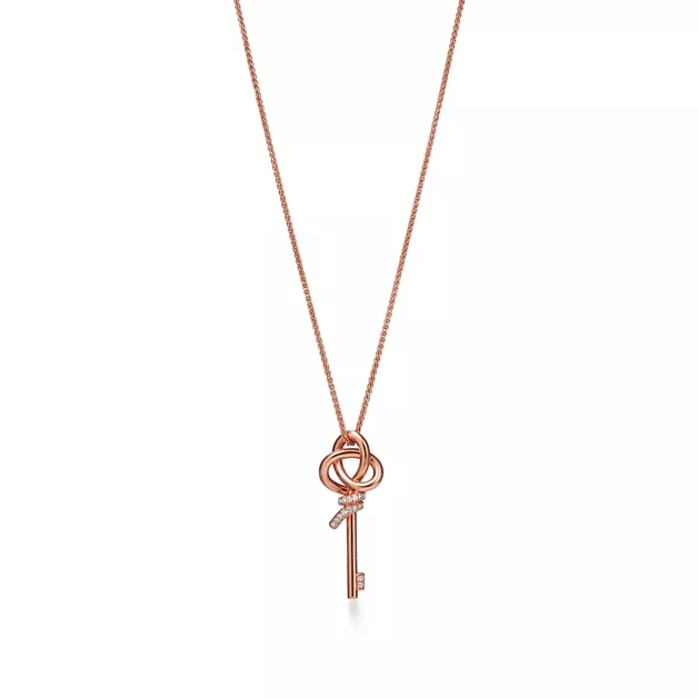 Tiffany Knot ist ein Symbol der unerschütterlichen Bande der Liebe. Inspiriert von einer Schleife aus dem Tiffany Archiv aus dem Jahr 1889 ist Knot ein Symbol für die beständigsten und bedeutungsvollsten Beziehungen im Leben. Dieser Anhänger ist aus 18 Karat Roségold gefertigt und wurde von Hand auf Hochglanz poliert. Jeder Diamant im runden Brillantschliff wurde sorgfältig ausgewählt, um die hohen Standards von Tiffany zu erfüllen. Für maximale Brillanz erfolgt die Setzung in präzisen Winkeln von Hand. Tragen Sie diesen Anhänger einzeln oder in Kombination mit klassischen Silhouetten für ein überraschendes Zusammenspiel.