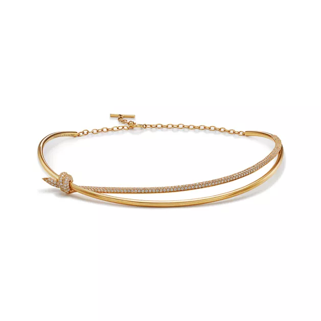 Die verschlungenen Enden des charakteristischen Tiffany Knot Motivs symbolisieren die Kraft der zwischenmenschlichen Beziehungen. Jedes Design der Tiffany Knot Kollektion ist ein komplexes Stück Handwerkskunst und bietet ein harmonisches Gleichgewicht zwischen Stärke und Eleganz. Diese Halskette ist aus Gelbgold und Pavé-Diamanten gefertigt und wurde von Hand auf Hochglanz poliert. Jeder Diamant im runden Brillantschliff wurde sorgfältig ausgewählt, um die hohen Standards von Tiffany zu erfüllen. Für maximale Brillanz erfolgt die Setzung in präzisen Winkeln von Hand. Tragen Sie diese Halskette allein, um atemberaubende Akzente zu setzen.