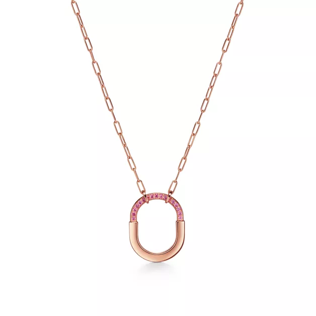 Tiffany Lock, inspiriert von einem Vorhängeschloss aus dem Tiffany Archiv aus dem Jahr 1883, ist ein Symbol der ewigen Liebe. Lock ist ein universelles Symbol für das, was am wichtigsten ist, und wurde entworfen, um Geliebtes zu bewahren. Bei Tiffany Lock spielen rosa Saphire die Hauptrolle. Pink, eine der seltensten Saphirfarben der Natur, symbolisiert die unendliche Kraft der Liebe und verkörpert den Geist der Lock Kollektion. Hier wurden die leuchtenden Edelsteine von Hand in einem Anhänger in 18 Karat Roségold gesetzt. Kombinieren Sie ihn mit anderen Kreationen aus der Tiffany Lock Kollektion für einen Look von maximaler Ausdruckskraft.