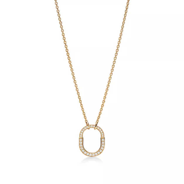 Tiffany Lock, inspiriert von einem Vorhängeschloss aus dem Tiffany Archiv aus dem Jahr 1883, ist ein Symbol der ewigen Liebe. Lock ist ein universelles Symbol für das, was am wichtigsten ist, und dafür bestimmt, Geliebtes zu bewahren. Kombinieren Sie diesen Anhänger in 18 Karat Gelbgold mit Pavé-Diamanten mit anderen Designs aus der Kollektion für einen Look von maximaler Ausdruckskraft.