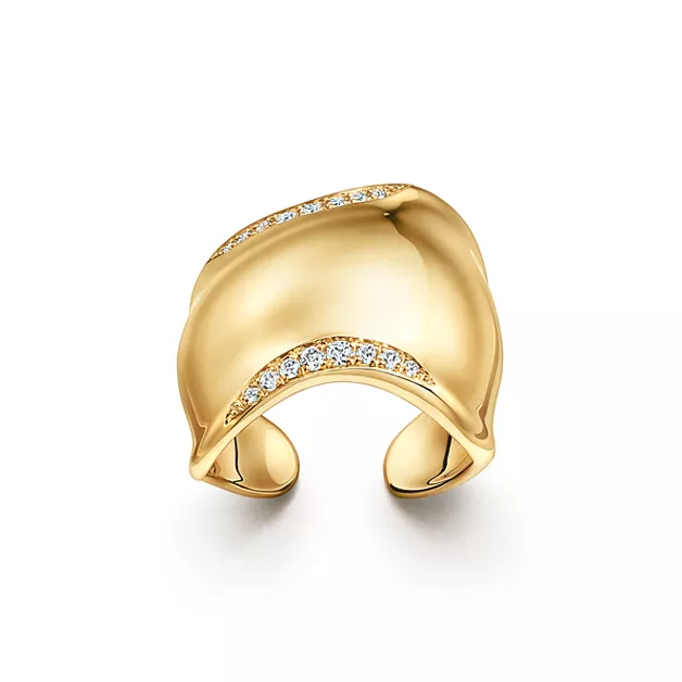 Eine Hommage an die erhabene Schönheit der Natur: Der Elsa Peretti® Bone Ring zeichnet sich durch sinnlichen Konturen aus, die ihn mit dem Körper eins werden lassen. Der Bone Ring ist inspiriert von dem bahnbrechenden Bone Cuff Design, das erstmals in den 1970ern vorgestellt wurde, und besticht mit müheloser Eleganz und Kraft. Dieser Ring in 18 Karat Gelbgold mit Diamantakzent ist so geformt, dass er sich an Ihren Finger anpasst. Egal, ob Sie ihn auf traditionelle Weise oder an einem Knöchel tragen – er setzt immer ein extravagantes Statement.
