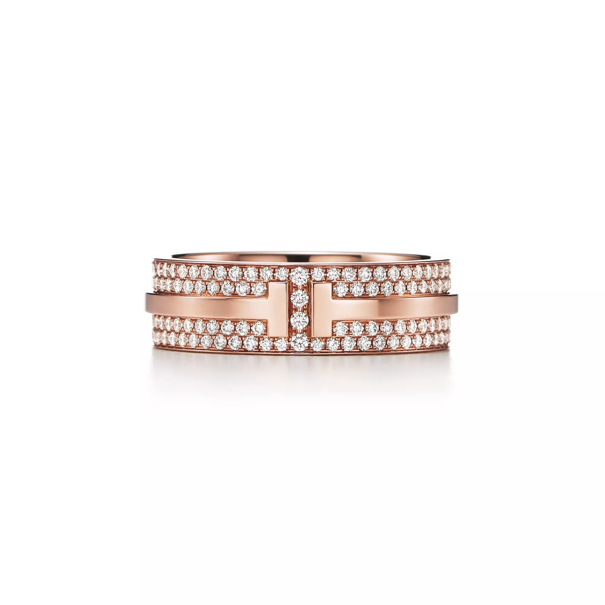 Tiffany T Breiter Pavé-Diamantring in 18 Karat Roségold