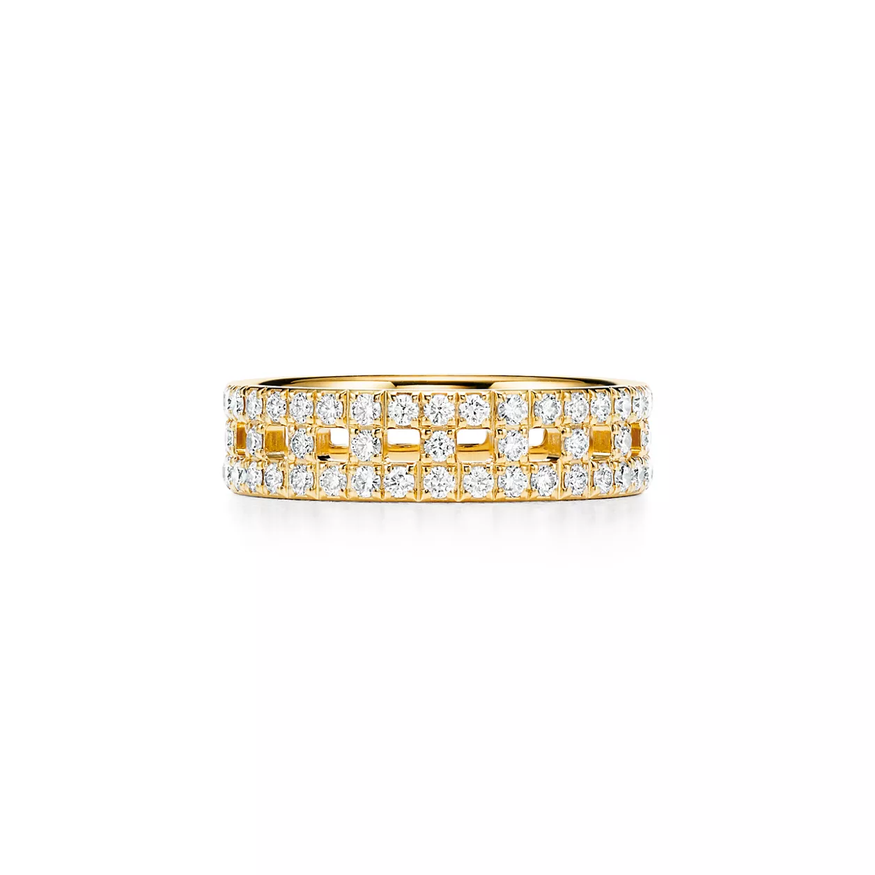 Tiffany T True breiter Ring in Gold mit Pavé-Diamanten