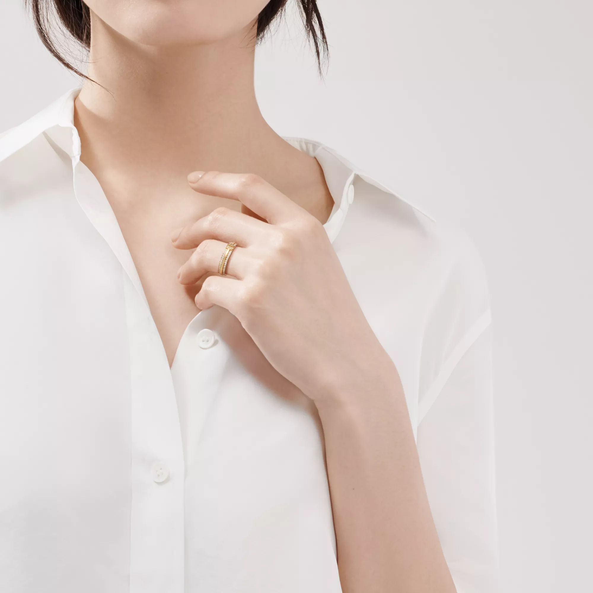- Tiffany T:Schmaler Pavé-Diamantring in Gelbgold