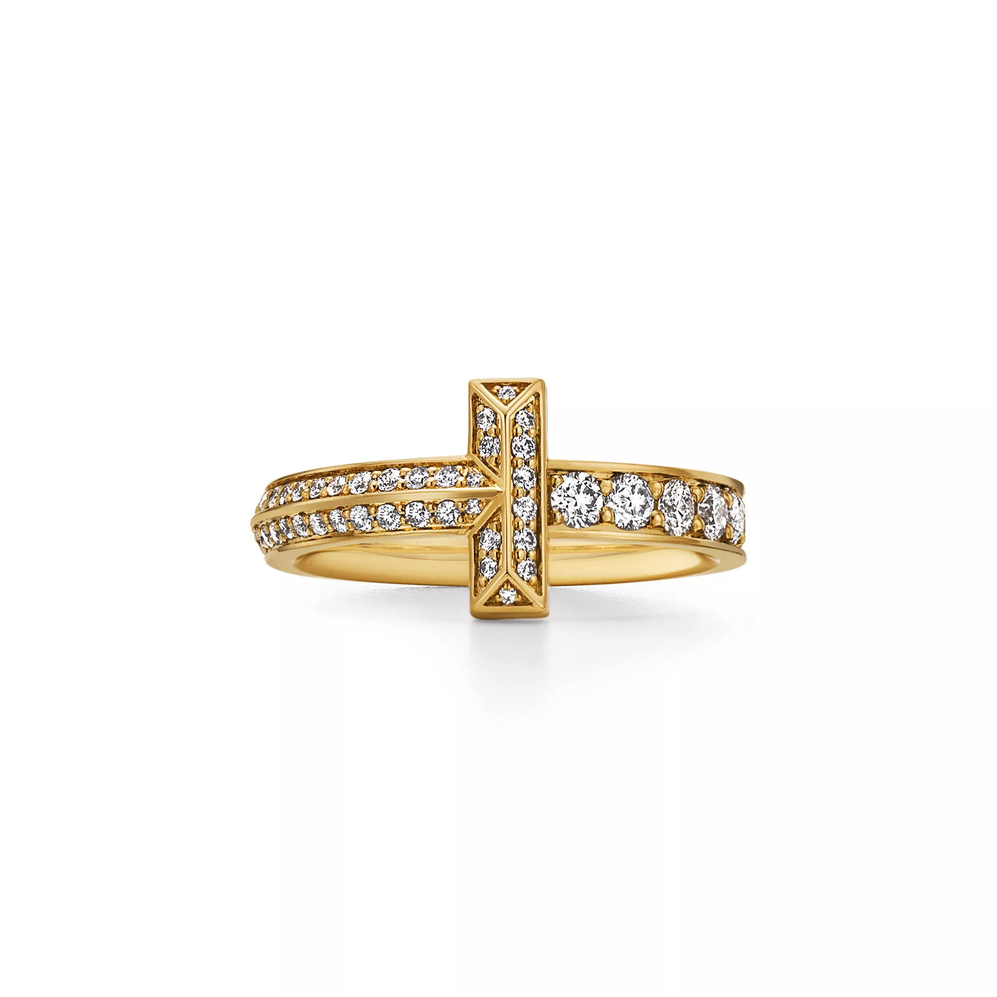 Tiffany T T One schmaler Ring in Gelbgold mit Diamanten
