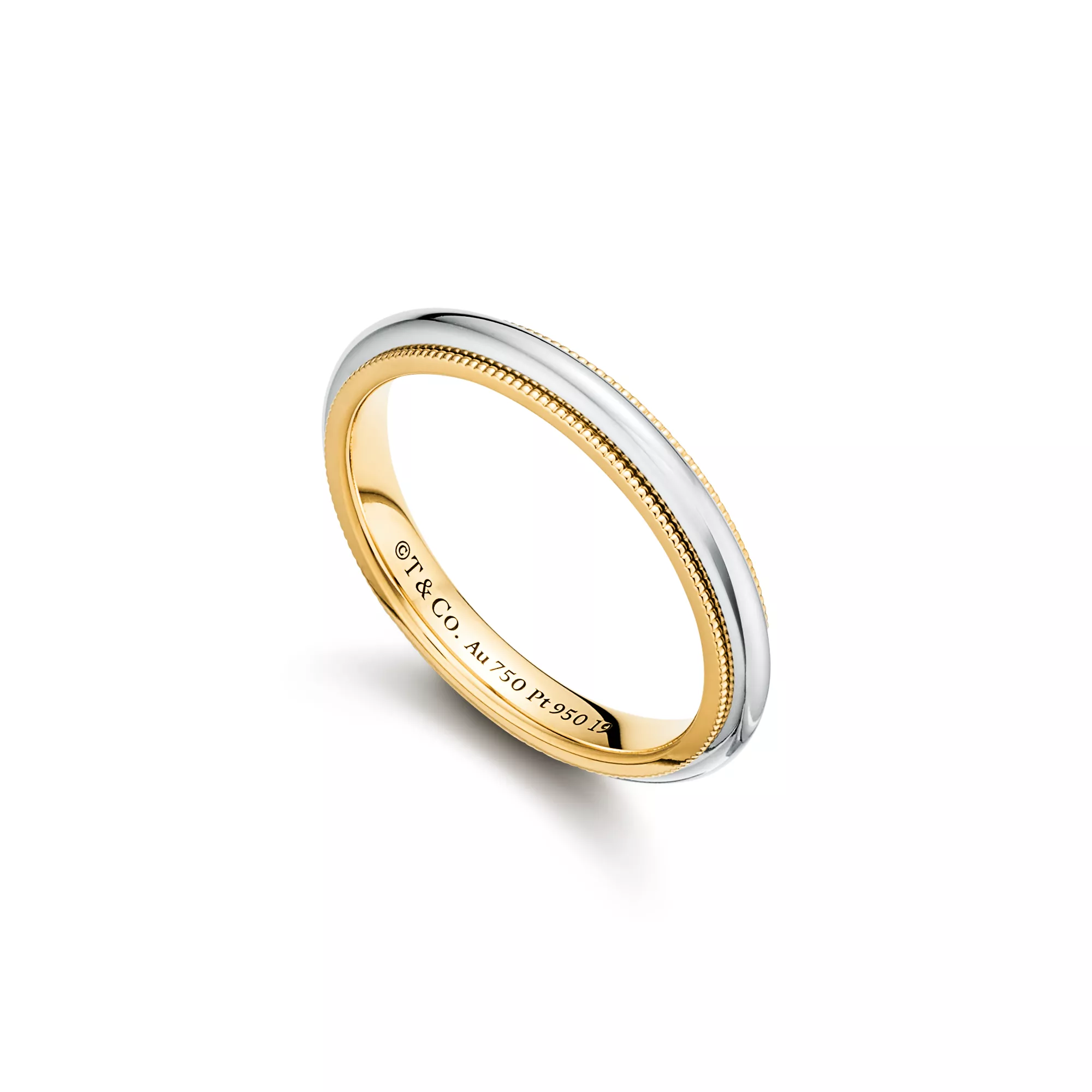 - Tiffany Together:Milgrain-Ehering in Gelbgold und Platin