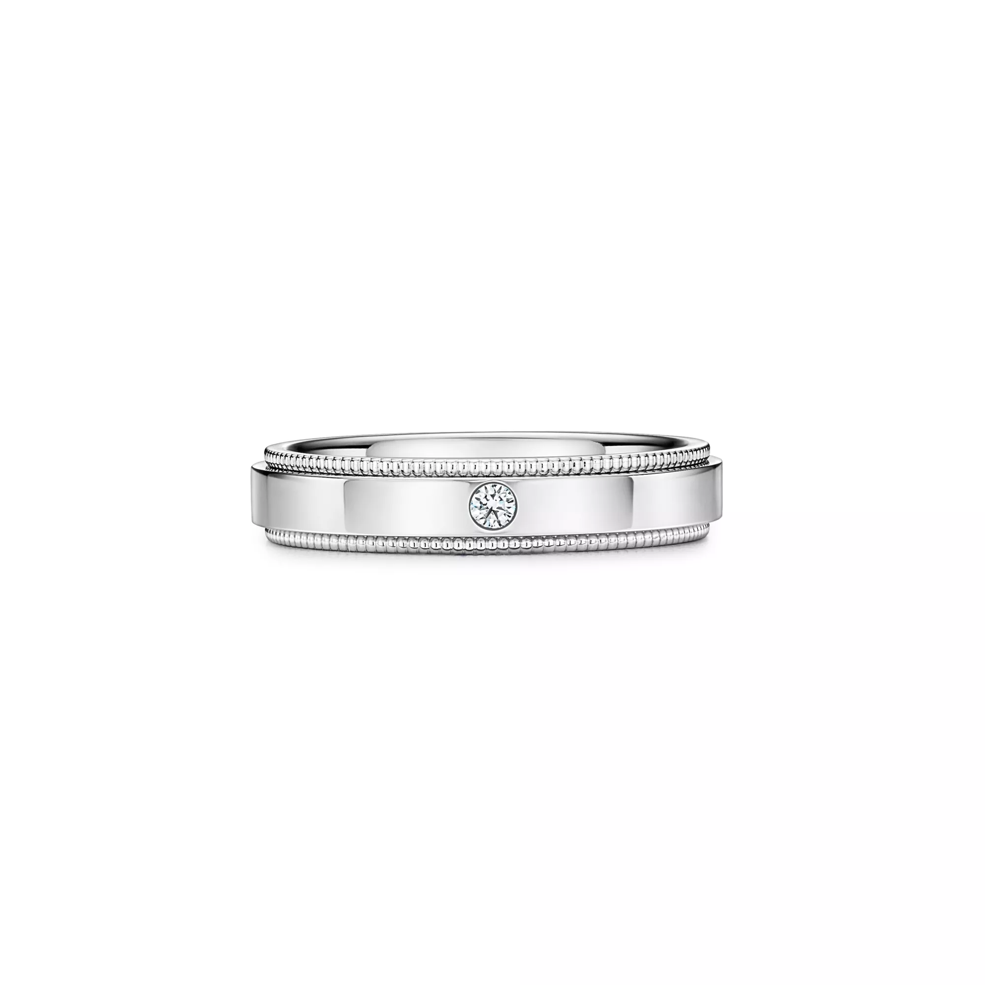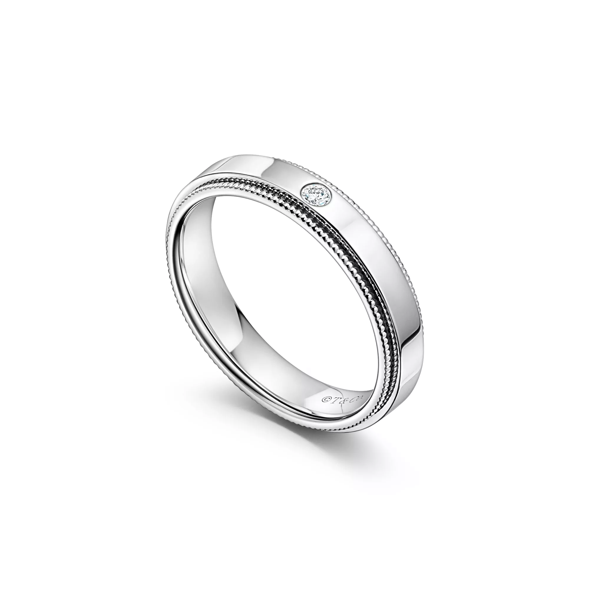 - Tiffany Together:Milgrain-Ehering in Platin mit Diamant, 4 mm breit